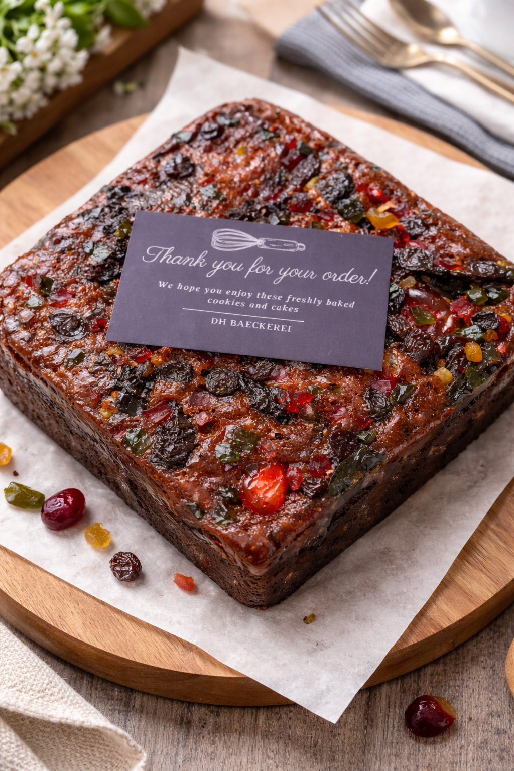 Prune, cempedak, and Cadbury layers baked in small runs with a rich butter crumb.